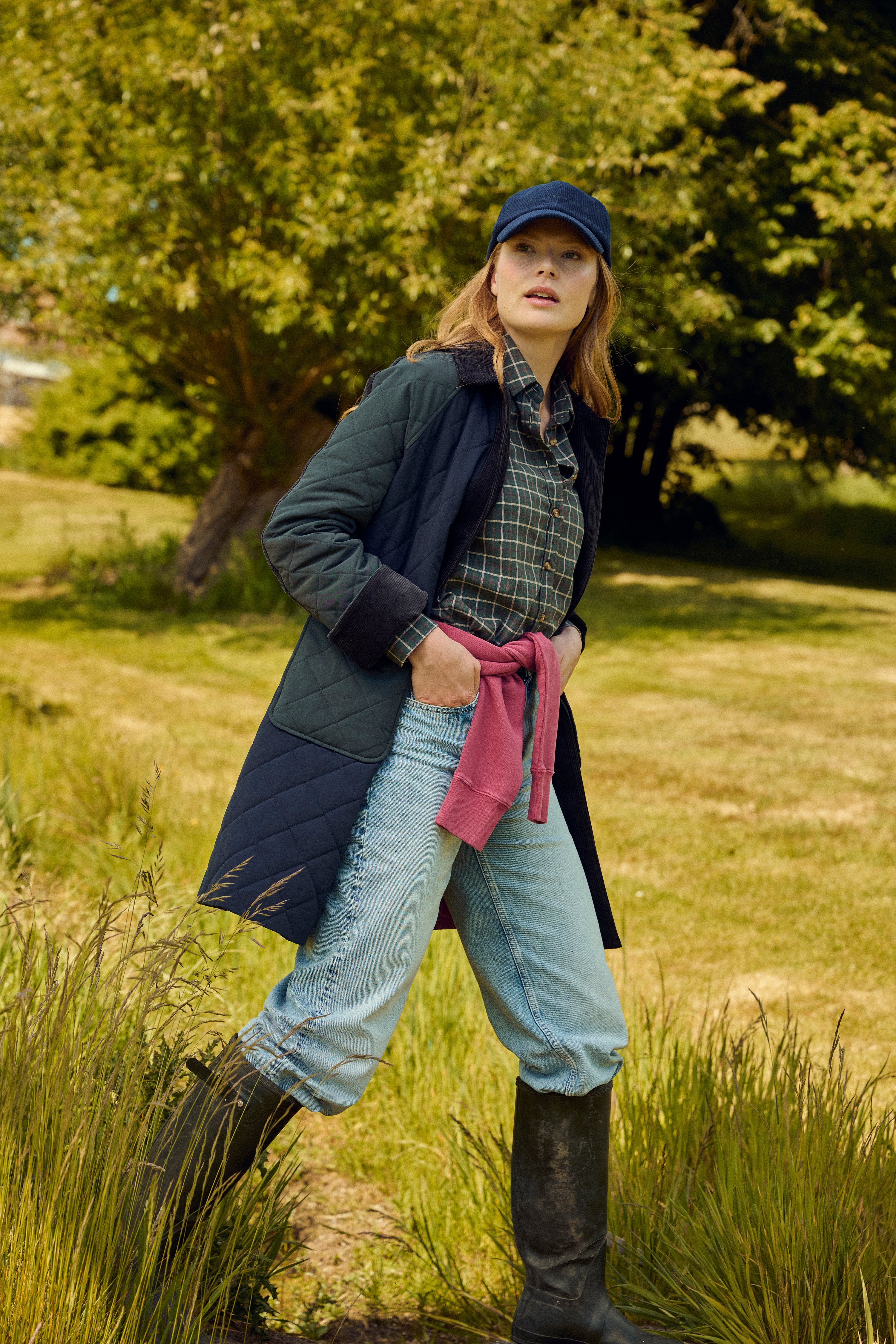 - A-Line quilted coat in a stylish colour block design with cord trim detailing