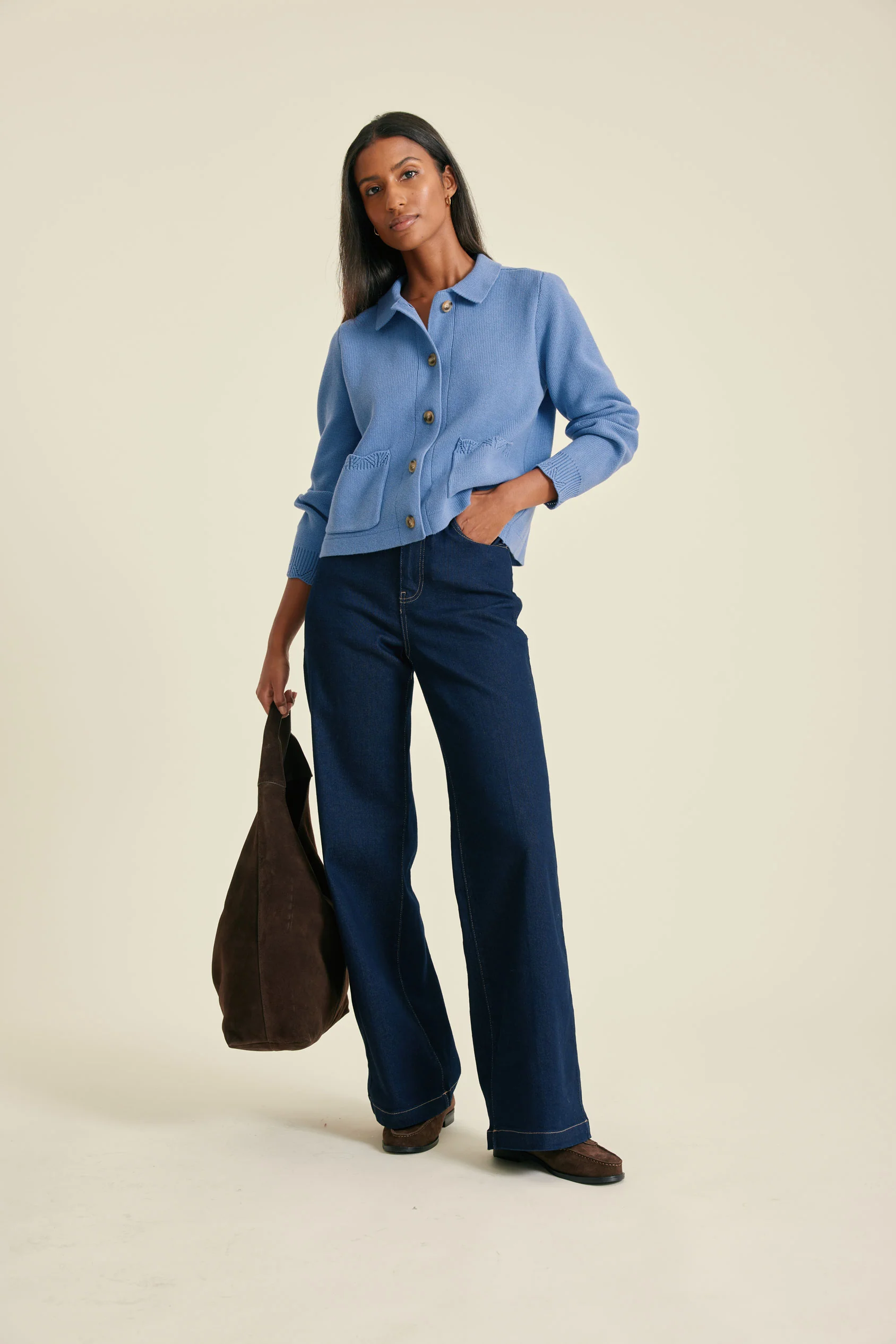 - Collared knitted jacket with front pocket design